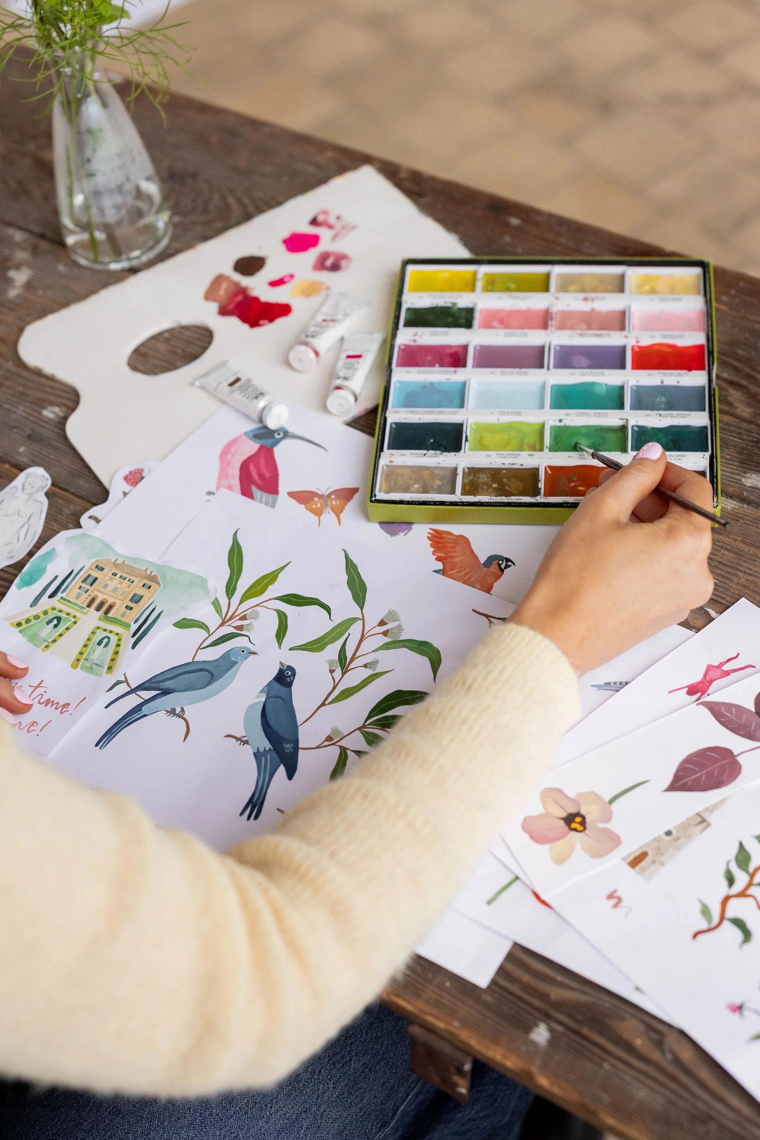All wedding stationery is hand painted with gouache paint, and carefully composed together with hand painted text.